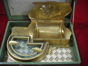 ของเก่าสะสม ชุดกล่องใส่บุหรี่และที่เขี่ยบุหรี่โบราณ ทองเหลือง ลงสี ดีไซด์เรือสำเภาคลาสสิคเก่า อายุกว่า 80ปี หายาก น่าสะสม