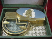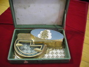 ของเก่าสะสม ชุดกล่องใส่บุหรี่และที่เขี่ยบุหรี่โบราณ ทองเหลือง ลงสี ดีไซด์เรือสำเภาคลาสสิคเก่า อายุกว่า 80ปี หายาก น่าเก็บสะสม พร้อมกล่องเก็บเดิมๆ ผลงานหนึ่งเดียว มีชิ้นเดียวเท่านั้น ขายเพียง 5,500บาท