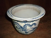 - กระถางต้นไม้ลายคราม(ญี่ปุ่น) ลายมังกรด้นเมฆ ขนาดปากกว้าง 11 นิ้ว สูง 9 นิ้ว ขอบปากบิ่น 1 จุด นอกนั้นสมบูรณ์ ราคาไม่แพงครับ