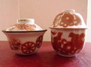 - จานเชิง 3 ใบ 3 แบบ ขนาด 4 นิ้ว เป็นเบญจรงค์เนื้อกังไส ส่วนขนาด 3 นิ้วกับ 5 นิ้วเป็นเนื้อดินอยุธยาหายากครับ