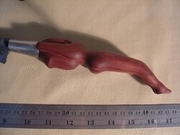 ด้ามและฝักทำจากไม้ประดู่แท้ ด้ามแกะสลักเป็นรูปหญิงสาว