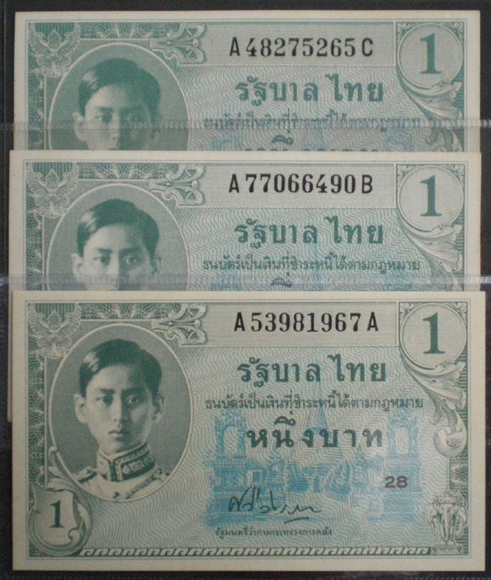 ธนบัตร ชนิดราคา ๑ บาท สมัยรัชกาลที่ ๘ แบบ ๘ พานรัฐธรรมนูญ สภาพสวย UNC. หมวด A B และ C หายาก ราคา ชุดละ 800 บาท (w.974)