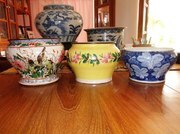 - กระถางต้นไม้ลายคราม(ญี่ปุ่น) ลายมังกรด้นเมฆ ขนาดปากกว้าง 11 นิ้ว สูง 9 นิ้ว ขอบปากบิ่น 1 จุด นอกนั้นสมบูรณ์ ราคาไม่แพงครับ