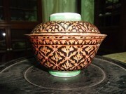 - ชามฝาเบญจรงค์ลายน้ำทองลายพุ่มข้าวบิณฑ์พื้นดำ(กบิลดำ) ขนาด 4.75 นิ้ว สวยสมบูรณ์น้ำทองสวยๆครับ