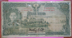 ธนบัตร ชนิดราคา ๒๐ บาท ของเก่า สมัยรัชกาลที่ ๗ แบบ ๓ รุ่น ๑ หมายเลข ๘๗๕๕๒ สภาพผ่านการใช้งาน หายาก ราคา ฉบับละ 3,500 บาท (ว.920)