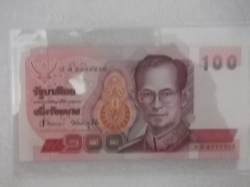 ธนบัตร 100 บาท ร.9 หมายเลข 2222227 หมายเลข 2222228 เลขเรียง เหมาะสำหรับเก็บสะสม ราคา ฉบับละ 250 บาท