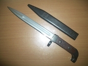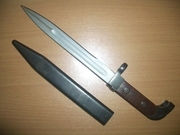 ดาบปลายปืนทหาร เก่าเก็บ ยังไม่เคยใช้งาน ความยาวจรดปลายด้าม 31.3 cm. ความยาวใบมืด 20.25 cm. ฝักโลหะ สภาพดี