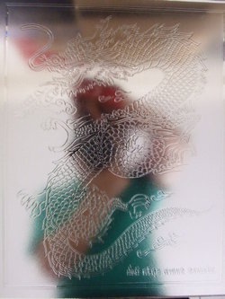 เป็นงานศิลปะการกัดกระจกร่องลึก รูปมังหรให้โชค