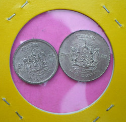 เหรียญดีบุก ชนิดราคา ๑๐ สตางค์ และ ๕ สตางค์ รัชกาลที่ ๙ ตราแผ่นดิน พ.ศ. ๒๔๙๓ ของเก่า สภาพสวย ผิวเดิม หายาก เหมาะสำหรับการเก็บสะสม ราคา คู่ละ 100 บาท (w.855)