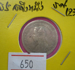 เหรียญเงิน ชนิดราคา ๑ สลึง รัชกาลที่ ๕ ร.ศ. ๑๒๓ สภาพผ่านการใช้งาน หายาก เหมาะสำหรับเก็บสะสม ราคา เหรียญละ 650 บาท (ว.722)