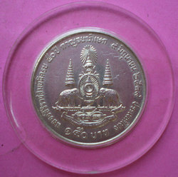 เหรียญเงินชนิดราคา ๑๕๐ บาท รัชกาลที่ ๙ กาญจนาภิเษก พ.ศ. ๒๕๓๙ สภาพสวย หายาก ราคา เหรียญละ 500 บาท (w.818)