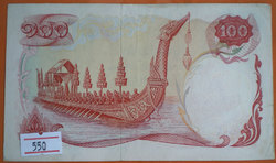 ธนบัตร ชนิดราคา ๑๐๐ บาท รัชกาลที่ ๙ แบบ ๑๐ ด้านหลังรูปเรือหงส์ หมายเลข 873976 สภาพผ่านการใช้งาน หายาก ราคา ฉบับละ 550 บาท (w.772)