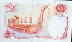 ขายธนบัตรแบบเก่า (ใบใหญ่) รัชกาลที่ 9 ชนิดราคา 100 บาท หลังภาพเรือสุพรรณหงส์