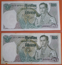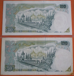 ธนบัตร ชนิดราคา ๒๐ บาท รัชกาลที่ ๙ แบบ ๑๒ ด้านหลังรูปเรืออนันตนาคราช สภาพสวย หายาก รวม ๒ ฉบับ ราคา คู่ละ 400 บาท (w.779)