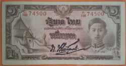 ธนบัตร ชนิดราคา ๑ บาท สมัยรัชกาลที่ ๘ แบบ ๖ ญี่ปุ่นพิมพ์ออกใช้ช่วงสงครามโลกครั้งที่ ๒ ลายเซ็น ภ. บริภัณฑ์ยุทธกิจ หมายเลข 74500 สภาพสวย หายาก ราคา ฉบับละ 1200 บาท (w.764)