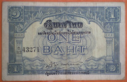 ธนบัตร ชนิดราคา ๑ บาท ( ONE BAHT ) สมัยรัชกาลที่ ๘ แบบพิเศษ ลายเซ็น ปรีดี พนมยงค์ หมายเลข 43271 สภาพผ่านการใช้งาน หายาก ราคา ฉบับละ 900 บาท (w.741)