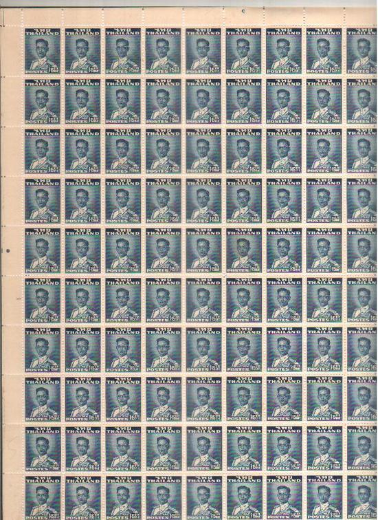 แสตมป์เก่าหายากต้นรัชกาลที่ 9 ราคา 1.15 บาท ทั้งแผ่น 100 ดวง
