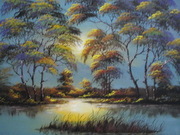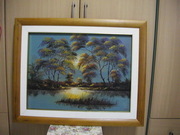 ของสะสม รูปภาพสีน้ำมันบนแคนวาส "อรุณรุ่ง" กรอบใม้2ชั้นหรู โดยศิลปินจากศิลปากร ขนาด 24x36นิ้ว หายาก น่าสะสม