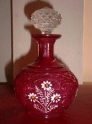 - ขวดน้ำหอมแก้วเก่าสีแดง สำหรับใส่ในชุดเครื่องแป้งสวยๆ สมบูรณ์ครับ (ขายแล้วครับ)