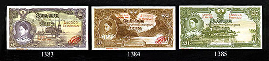 ธนบัตรทั้ง 3 ฉบับไม่มีลายเซ็น หมายเลขตอง 0 ทั้งสิ้น และเป็นธนบัตรตัวอย่าง มีคำว่า SPECIMEN อยู่ด้วย