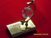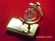 ของสะสม ที่ทับกระดาษ ทรง ลูกโลก แก้วคริสตรัล ฐานทองเหลืองขัดเงา ขนาดฐาน ยาว 7x4 ซม. หายากน่าสะสม