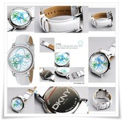DKNY NY4894 Blue Flower White Leather Watch