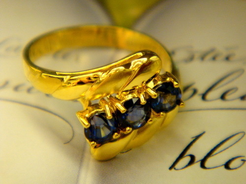 แหวนทองพลอยไพลินเรียงแถวสามเม็ด
