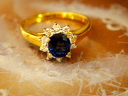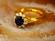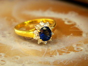 แหวนทองพลอยไพลินพม่าสด ล้อมเพชร