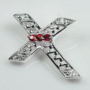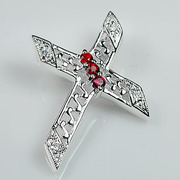 จี้ไม้กางเขนพลอยซัพไฟร์สีแดง (Red Sapphire) ทรงกลมเรียงกัน
