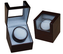 กล่องหมุนนาฬิกา หรือ Watch Winder สำหรับ 1 เรือน ตัวกล่องหมุนนาฬิกาทำจากไม้ MDF ลงสีขัดเงาแบบเปียนโน ภายในบุด้วยกำมะหยี่สีครีม สวยงาม ตัวกล่องสามารถปิดเปิดได้ ไม่มีกุญแจ ป้องกันฝุ่นได้และมีช่องมองเป็นอคริลิคใส 2 ด้าน (ด้านบนและด้านหน้า) สามารถมองเห็นนาฬิกาได้ชัดเจนขณะหมุน มอเตอร์เป็นมอเตอร์ญี่ปุ่นยี่ห้อ Mabuchi หมุนเงียบ แทบไม่ได้ยินเสียง