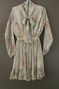 ขายชุดเดรส วินเทจ ลายดอกฟ้าเทา