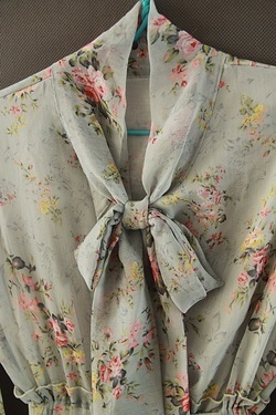 ขายชุดแนววินเทจ ลายดอกกุหลาบ สีฟ้าเทา