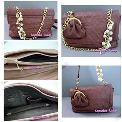 Topshop bags กระเป๋าสุดน่ารัก ใบนี้คุ้มค่าที่สุด ด้านในผ้าซับสีม่วงชมพูเข้ม สีคลาสสิคที่ทำให้มุกสวยเด่นมากๆค่ะแต่งฝาด้วยกระเป๋าใส่เหรียญ-สายที่ 1 สายมุก สะพายแบบเป็นสายมุก