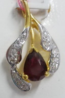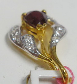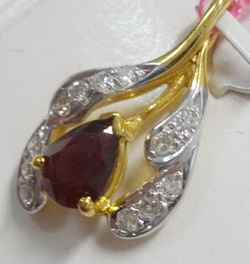 จี้หลุดจำนำ ทับทิมเจียทรงหยดน้ำสีแดงสดเลยค่ะ สีเข้มมากๆ ใบไม้ฝังเพชรเกสร 0.12 กะรัต งานน่ารักค่ะ