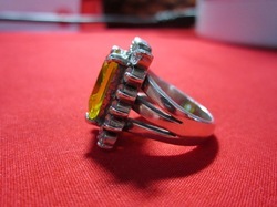 ซิทรีนเป็นรัตนชาติที่มีพลังงานสูง มีประโยชน์ต่อจิตใจและกระบวนการทางความคิด ช่วยปรับทัศนคติให้เป็นเหตุเป็นผล ลดการใช้อารมณ์ตัดสินปัญหา ช่วยให้การสื่อสารระหว่างบุคคลมีความประณีประณอม ก่อให้เกิดความเข้าใจเอื้ออาทรต่อกันมากขึ้น อีกทั้งยังช่วยเยียวยาจิตใจของผู้ป่วยเรื้อรังทำให้มีกำลังใจสู้กับโรคภัยต่อไปได้ แหวนพลอยซิทรีนวงนี้ ล้อมเพรชเบลเยี่ยม 18เม็ด เหมาะกับผู้หญิงมาก สวยสุดๆ หนัก 10กว่ากะรัต ขาย 27,000บาท