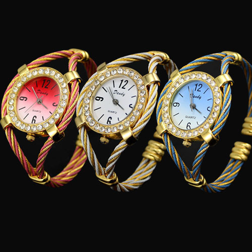 Good 3 pcs Wire rope Brand Girls Crystal Watch