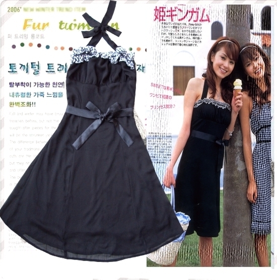 สไตล์ : เกาะอกสายคล้องคอผูกเป็นโบว์ มีเข็มขัดเป็นผ้า สวยหวานสไตล์สาวญี่ปุ่น