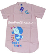 ชุดนอนแซกโดเรมอน ชุดนอนกระโปงแขนสั้น คอปก ลายโดราเอมอนน่ารัก ของแท้ ราคาขายส่ง