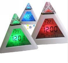นาฬิกาแฟนซี เปลี่ยนสีได้ 7 สี ทรงปิรามิตฐานสามาเหลี่ยม (LED 7 color changing Triangle Pyramid music Alarm Clock,led clock )