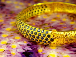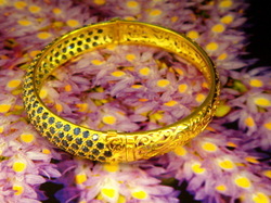 กำไลทองประดับด้วยไพลินซีลอน ฝังพลอยครึ่งวงกลม
