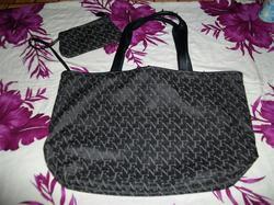 2. สีดำทรงshopping bag ขนาด 20 x 12 นิ้ว ตัวกระเป๋าทำจากผ้าไหม สายกระเป๋าทำจากหนังแท้ ด้านในมีช่องซิป 1 ช่อง และกระเป๋าเล็กอีก 1 ใบ ขาย 750 บาท