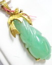 จี้หลุดจำนำ เป็นหยกสีเขียวอ่อน แกะสลัก ด้านบนเป็นใบไม้ทอง