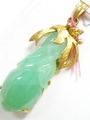 จี้ชิ้นเป็นหยกสีเขียวแกะสลัก ส่วนด้านบนเป็นใบไม้ทอง ห่วงหยดน้ำ