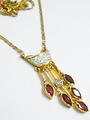 สร้อยคอเส้นนี้เป็นลักาณะแบน ส่วนด้านหน้าเป็นฝังเพชรทั้งหน้า ทำทองเป็นก้านยาวห้อยตุ้งติ้งด้วยทับทิมเจียแบบหุ้ม ตรงกลางเป็นเพชรเม็ดใหญ่เม็ดเดี่ยวฝังหุ้ม