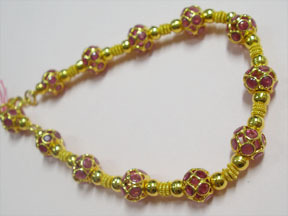สร้อยข้อมือหลุดจำนำ ทับทิมตะกร้อสร้อยข้อมือเส้นนี้ทำทองเป็นลักษณะลูกตะกร้อ ฝังทับทิมลักษณะเป็นฝังหุ้ม ระหว่างลูกตะกร้อทำทองเป็นรูปตะกร้อ และเป็นเกลียวเชือกขั้นไว้