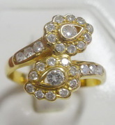 แหวนเพชรเกสร ก้านไขว้ ทรงหยดน้ำ 0.42 กะรัตแหวนวงนี้ทำทองเป็นก้านไขว้ ที่ก้านฝังเพชรเกสรแบบสอด และที่ปลายด้านในฝังเพชรแบบสอด ทรงหยดน้ำและล้อมด้วยเพชรอีกชั้นฝังหุ้มรายละเอียดสินค้า ทองแท้น้ำหนักรวมทั้งหมด 3.2 กรัม (ชั่งน้ำหนักรวมทั้งชิ้น) เพชรแท้ 28 เม็ด หนักทั้งหมด 0.42 กะรัต ขนาด 51
