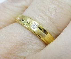 แหวนปลอกมีด เพชรเกสรเม็ดเดี่ยว 0.03 กะรัตแหวนวงนี้เป็นทรงปลอกมีด เป็นแบบขัดมันและเนื้อด้าน ฝังเพชรเกสรแบบหุ้ม