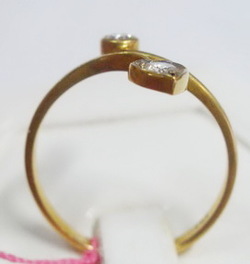 แหวนวงนี้เป็นแบบก้านไขว้ ที่ปลายฝังเพชรเกสรเป็นทรงกลมและหัวใจ ฝังหุ้ม