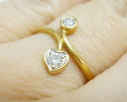 แหวนหลุดจำนำ ก้านไขว้ หัวใจและกลม เพชรเกสร 0.12 กะรัต งานเล็กน่ารัก งานแบบหวานๆ ,