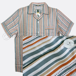ชุดนอนผู้ชายสีขาวลายทางน้ำตาลเขียว ผ้าcottonแท้ 100%(เป็นผ้าฝ้ายแบบนิ่มๆค่ะ) ผ้าเนื้อดี ให้สัมผัสโปร่ง เบาบาง สบายตัว ระบายอากาศได้ดี